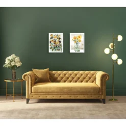 The Astratto wall art uses several gradations of teal to produce a moody, stand-out statement piece. A slim strip of gold foil runs across the centre of the canvas. The piece is framed in black wood.