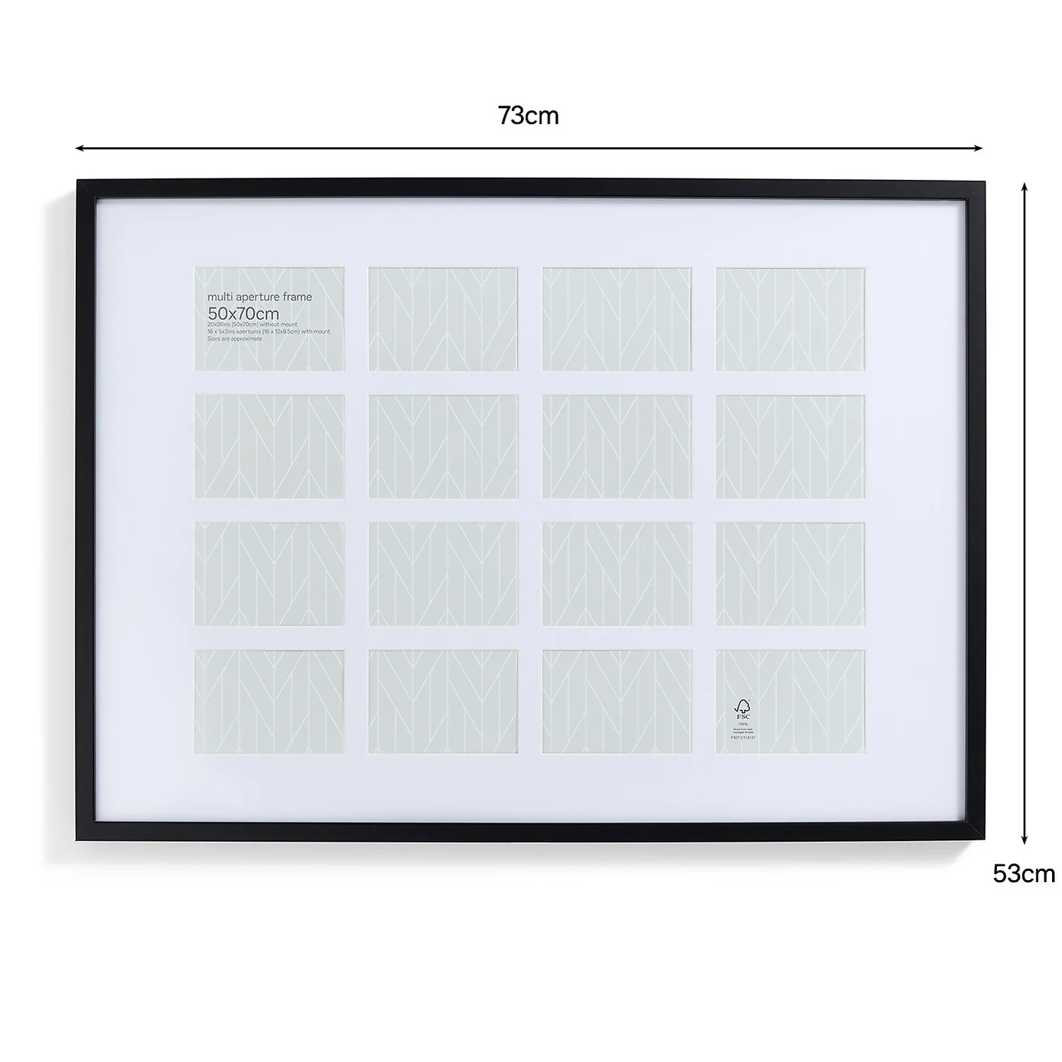 - Suitable for image size 50 x 70cm without mount or 16 x 5 x 3in images with multi aperture mount