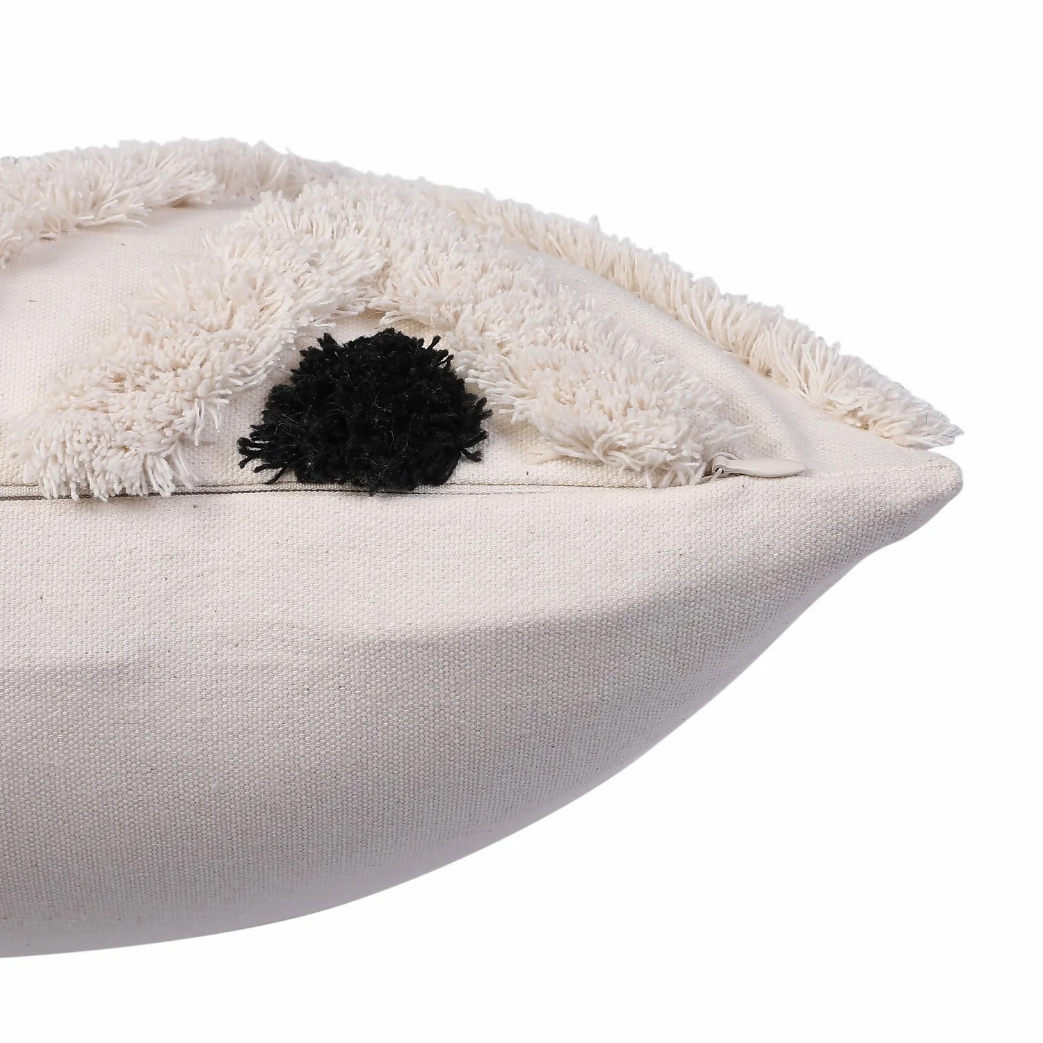 Add some Boho-chic to your sofa with this Aztec inspired tufted geomentric motif cushion. In mixed tones of natural, black with an accent of grey. Plain cotton canvas reverse.